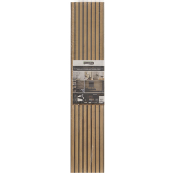 Dit wandpaneel Element Linio is gemaakt van kunststof, maar heeft de uitstraling van een houten lattenwand. Het paneel is 3D gedrukt en bedekt met vernis. Hierdoor lijkt het net van echt hout gemaakt. Een paneel is 260 cm hoog en 37,5 cm breed. Dankzij dit grote formaat, kun je snel je muren bedekken, ongeacht het te bedekken oppervlak.