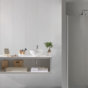- Watervaste wandpanelen met unieke waterdichte tand- en groef verbinding.