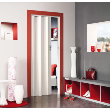 Grosfillex vouwdeur spacy glans wit 84x205 cm bespaart op een praktische en stijlvolle manier ruimte. De Grosfillex vouwdeur spacy glans wit bestaat uit afzonderlijke lamellen die met een soepel verbindingsprofiel aan elkaar bevestigd zijn, en is vervaardigd uit extra stevig PVC van zeer hoge kwaliteit. Kan door het op maat zagen van lamellen passend worden gemaakt voor iedere deuropening. Verkrijgbaar in verschillende kleuren en wordt geleverd inclusief aluminiumkleurige deurklink en slot met sleutel.