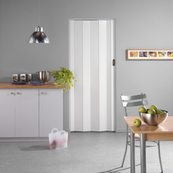 Grosfillex vouwdeur una wit 84x205 cm bespaart op een praktische en stijlvolle manier ruimte. De Grosfillex vouwdeur una wit bestaat uit afzonderlijke lamellen die met een soepel verbindingsprofiel aan elkaar bevestigd zijn, en is vervaardigd uit extra stevig PVC van zeer hoge kwaliteit. Kan door het op maat zagen van lamellen passend worden gemaakt voor iedere deuropening.