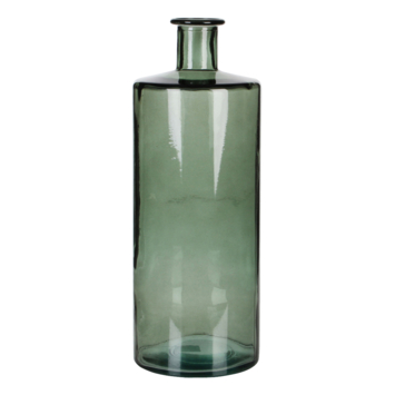 Fles vaas van 100% gerecycled glas in een grijsgroene kleur. Erg geschikt voor wat losse pluimen, takken of droogbloemen. De afmetingen van de glazen fles zijn H40 xD15 cm.