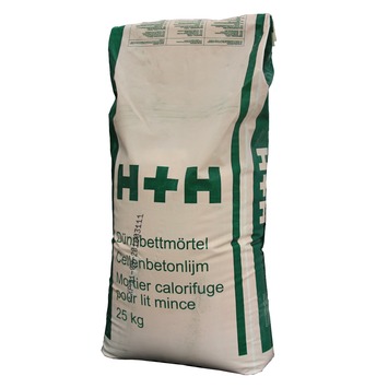 H+H cellenbetonlijm is een geplastificeerde cementlijm, en een droge fabriekslijm. H+H cellenbetonlijm is weerbestendig, hechtend en wit van kleur. Ook treedt er geen volumeverlies op.