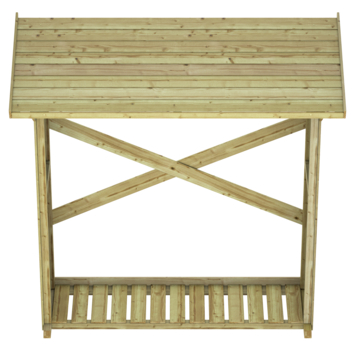 De Haardhoutberging Wenen is een opslagplek voor je openhaardhout. De overkapping en de vloer zijn gemaakt van geïmpregneerd hout. Hierdoor is het hout beschermd tegen onder andere water en schimmels. Zo blijft niet alleen de berging beschermd maar ook het hout wat er in ligt. Er is dus genoeg ruimte om al je openhaardhout in op te bergen, maar het neemt niet veel ruimte in de tuin in. Daarnaast kan de haardhoutberging snel en eenvoudig in elkaar worden gezet.