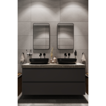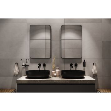 Op zoek naar een grotere spiegel met een modern design? Deze Haceka Deco spiegel in mat zwart aluminium is 80 cm hoog en 50 cm breed, met afgeronde hoeken voor een subtieler effect. Het smalle frame houdt het geheel luchtig en strak. Je hangt de spiegel eenvoudig aan de muur. Dankzij het aluminium frame blijft de spiegel licht van gewicht. De diepte van 3 cm zorgt dat hij niet te veel ruimte inneemt. Schoonmaken gaat makkelijk met wat glasreiniger of een mild schoonmaakmiddel. Montagemateriaal is niet inbegrepen.