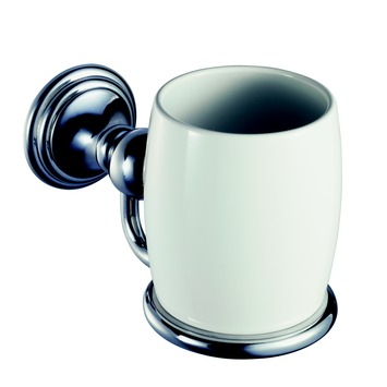 Haceka Bekerhouder Allure met Beker Chroom, wandmodel. Weer eens wat anders: het nieuwe én nostalgische design van deze porseleinen beker. Je haalt hem moeiteloos uit de houder en je zet hem altijd weer veilig terug: dankzij de rubberen ring klemt hij altijd stevig vast. De ronde vormen maken het ontwerp extra speciaal. Uiteraard voldoen de beker en de houder aan de Europese richtlijnen voor drinkbekers. Vind je de Allure serie ook zo mooi. Combineer dan alle producten van Allure. De Allure lijn bestaat uit een collectie kranen, badkamermeubels, douchesets en alle mogelijke accessoires.