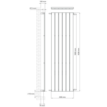 De Haceka designradiator Negev wit 858 Watt 184x40,8 cm is radiator met een tijdloos ontwerp. Hij bestaat uit vlakke verticale buizen (collectoren) en ronde horizontale buizen. Een mooi design waar je nooit op uitgekeken raakt. De Negev brengt niet alleen schoonheid, maar ook behaaglijke warmte in jouw badkamer. Je kiest dus ook voor comfort. De Haceka designradiator Negev wit 858 Watt 184x40,8 cm is thuis in elke badkamer. De radiator wordt geleverd met bevestigingsmateriaal en wandsteunen, ontluchtingsventiel en blindstop. Je hebt alleen nog een bijpassende radiatorkraan en cv-aansluitmateriaal nodig. De ideale aansluiting van de design-radiator is met de aan,- en afvoer volledig aan de bovenzijde of met de aan,- en afvoer volledig aan de onderzijde. Belangrijk bij de positie van de radiator is het stromingsschotje die in 1 van de horizontale buizen is gemonteerd. Deze dient opgehangen te worden aan de zijde waar de aan,- en afvoer zijn aangesloten. Dit stromingsschotje kun je waarnemen door in de horizontale buis te kijken; daar waar een belemmering zichtbaar is, is het schotje gemonteerd. De buis lijkt dus dicht in het midden. Kortom, de Haceka designradiator Negev wit 858 Watt 184x40,8 cm is overal op zijn plek.