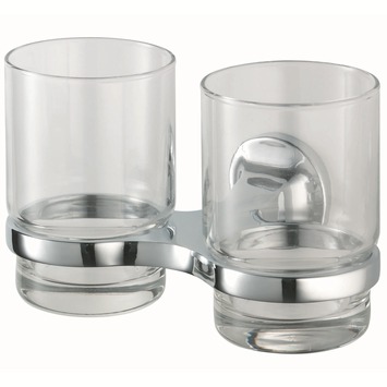 Haceka Dubbele Bekerhouder Aspen met Bekers Chroom, wandmodel. Met deze dubbele bekerhouder haal je een stijlvol en functioneel ontwerp in huis. De houder is eenvoudig aan de wand te monteren. De bekers zijn makkelijk uitneembaar en gemaakt van helder glas. Ze zijn getest en voldoen aan de Europese normen voor artikelen die met voedsel in aanraking komen. Dit betekent dat de bekers geen gevaarlijke stoffen afgeven en dat je er gegarandeerd veilig uit kunt drinken.