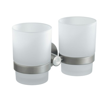 Haceka Dubbele Bekerhouder Kosmos Hangend met Bekers RVS, wandmodel. Wel zo makkelijk: deze dubbele glashouder van mat glas. Eén voor jouw tandenborstel, één om uit te drinken. Of gewoon: ieder een eigen glas. De bekers zijn makkelijk uitneembaar en gemaakt van mat glas. De bekers zijn getest en voldoen aan de Europese normen voor artikelen die met voedsel in aanraking komen. Dit betekent dat de bekers geen gevaarlijke stoffen afgeven en dat je er gegarandeerd veilig uit kunt drinken. Vind je de Kosmos serie ook zo mooi. Combineer dan alle producten van Kosmos. De Kosmos lijn bestaat uit een collectie kranen, douchecabines, douchesets en alle mogelijke accessoires.