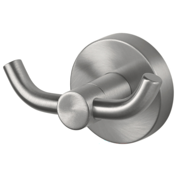 Met deze dubbele haak heb je altijd een handige plek om je handdoek, badjas of spons op te hangen. Ook ideaal als jashaak in de garderobe! Met een lengte van 9 cm en een muurafstand van 5 cm is deze haak compact en praktisch in gebruik. Dankzij de geborstelde RVS look past hij perfect in elke moderne inrichting. Je monteert de haak eenvoudig met het ronde muurplaatje van 5,3 cm, dat op een nette manier wordt bevestigd zodat de schroeven niet zichtbaar zijn. Alle benodigde montagematerialen zijn inbegrepen. Een veelzijdig accessoire dat je dagelijks gemak biedt!