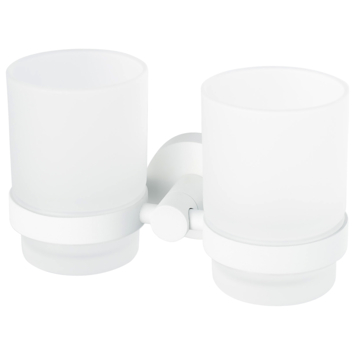 Met de dubbele bekerhouder in mat wit houd je je badkamer netjes en georganiseerd. Deze houder is perfect voor het opbergen van twee glazen, ideaal voor je tandenborstels of andere accessoires. Dankzij de hoogwaardige afwerking is hij bestand tegen vocht en slijtage, wat zorgt voor een langdurig gebruik. De strakke, ronde vormen en het matte oppervlak maken het een stijlvolle aanvulling in elke moderne badkamer. Je monteert de houder eenvoudig met het bijgeleverde bevestigingsmateriaal. Met deze dubbele uitvoering heb je altijd genoeg ruimte voor al je benodigdheden. Geef jouw badkamer een frisse, elegante uitstraling met dit praktische accessoire.