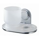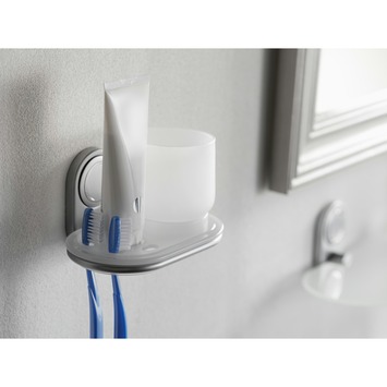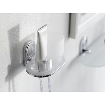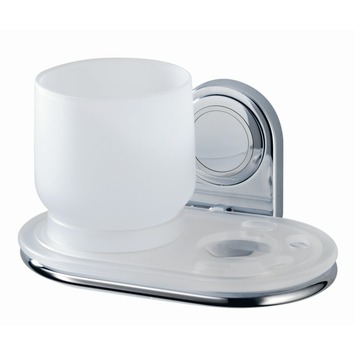 Haceka La Ronde glas, wandmodel met ruimte voor tandenborstels. Deze mooie La Ronde beker is gemaakt van wit mat glas dat volledig voldoet aan de Europese normen voor artikelen die met voedsel in aanraking komen. Dit betekent dat de bekers geen gevaarlijke stoffen afgeven en dat u er gegarandeerd veilig uit kunt drinken. De beker heeft fraaie rondingen en het glas is precies even hoog als de wandplaat. Het ontwerp is dus mooi in verhouding! U heeft naast de beker ruimte voor vier tandenborstels.