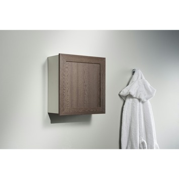 Deze Haceka Mix&match paneeldeur houtkleur 40x40 cm geeft jouw kastje een klassieke uitstraling. De houtkleur van deze paneeldeur versterkt dat nog eens. Wanneer je de deur wil afhangen, kun je gebruik maken van de scharnieren die bij het kastje zijn geleverd. Hiermee laat je de deur links of rechts draaien. Als je softclose-scharnieren wil gebruiken is dat ook mogelijk. Je kunt deze makkelijk apart aanschaffen. De deur heeft óf een vlakke achterplaat óf een spiegel die omgeven is door een wit kader. In de kast zit 1 houten plank die ook te vervangen is. Een glazen plank is los verkrijgbaar.