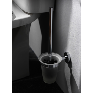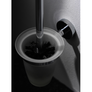 Haceka Toiletborstelhouder Kosmos Tec Hangend Chroom, wandmodel. Deze toiletborstelset is eenvoudig bij je toilet te hangen, hij staat dus niet in de weg bij het schoonmaken van de vloer. De matglazen pot haal je zo uit de houder: het glas is prima bestand tegen (agressieve) schoonmaakmiddelen en kan zelfs in de vaatwasser. De pot blijft dus jaren mooi! Elegant is ook de opstaande rand, de zwarte borstel blijft daardoor keurig uit het zicht. Vind je de Kosmos serie ook zo mooi. Combineer dan alle producten van Kosmos. De Kosmos lijn bestaat uit een collectie kranen, douchecabines, douchesets en alle mogelijke accessoires.