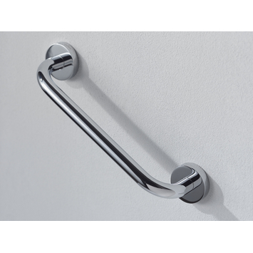 Haceka Wandbeugel Kosmos Chroom 30 cm. Met onze badgrepen kun je in de douche, de badkamer of het toilet altijd op een extra steuntje rekenen. Bovendien zijn ze prachtig van design. Uiteraard is deze badgreep TUV getest en voldoet hij aan de norm EN12182:1999. De Kosmos badgreep is geschikt voor personen tot 80 kg. Vind je de Kosmos serie ook zo mooi. Combineer dan alle producten van Kosmos. De Kosmos lijn bestaat uit een collectie kranen, douchecabines, douchesets en alle mogelijke accessoires.
