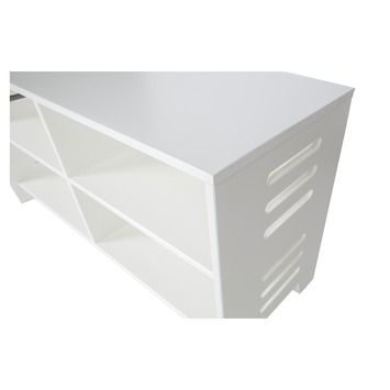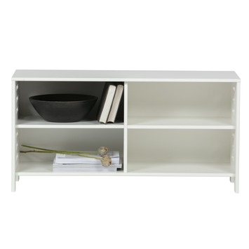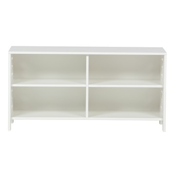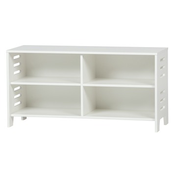 In deze vakkenkast kun je manden gebruiken als praktische opbergers om losse rommeltjes op te bergen. Maar ook zonder manden kun je veel kwijt in deze royale kast. Een paar lossen kussentjes bovenop nodigen meteen uit om plaats te nemen.