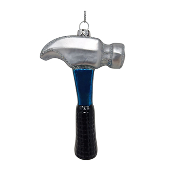 Op zoek naar originele kerstdecoratie? Ga voor dit gereedschap om op te hangen! Het ornament in de vorm van een hamer is gemaakt van glas en heeft een glimmende, blauwe kleur met zilveren glitters. Je kunt hem gemakkelijk ophangen aan het touwtje. Een grappige toevoeging in de kerstboom van een echte klusser! De afmetingen zijn L9,5 x B2 x H11 cm. Leuk om te combineren met andere kerstdecoratie uit dezelfde collectie!