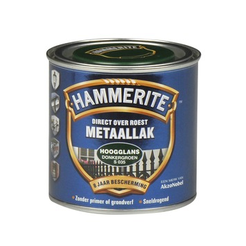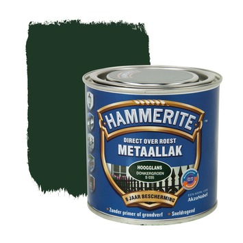 Hammerite metaallak donkergroen hoogglans 250 ml is een decoratieve, roestwerende metaallak voor alle soorten metaal. U kunt het zonder grondverf direct over roest aanbrengen. U hoeft dus niet urenlang te schuren of te ontroesten want Hammerite metaallak hecht uitstekend. Het stopt het roestproces en geeft maar liefst 8 jaar roestbescherming. Hammerite metaallak hoogglans is waterafstotend en weersbestendig waardoor u het goed kunt gebruiken voor de bescherming van allerlei metalen objecten buiten. Hammerite metaallak is in diverse kleuren leverbaar en is UV-bestendig waardoor het metaal langdurig mooi blijft. De inhoudsmaat is 250 ml.