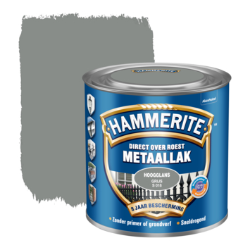 Hammerite metaallak grijs hoogglans 250 ml is een decoratieve, roestwerende metaallak voor alle soorten metaal. U kunt het zonder grondverf direct over roest aanbrengen. U hoeft dus niet urenlang te schuren of te ontroesten want Hammerite metaallak hecht uitstekend. Het stopt het roestproces en geeft maar liefst 8 jaar roestbescherming. Hammerite metaallak hoogglans is waterafstotend en weersbestendig waardoor u het goed kunt gebruiken voor de bescherming van allerlei metalen objecten buiten. Hammerite metaallak is in diverse kleuren leverbaar en is UV-bestendig waardoor het metaal langdurig mooi blijft. De inhoudsmaat is 250 ml.