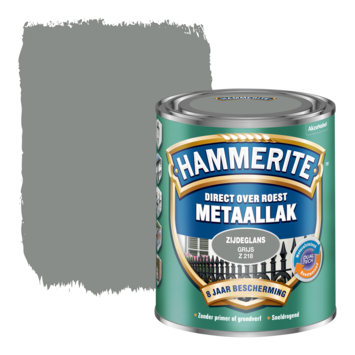 Hammerite metaallak grijs zijdeglans 750 ml is een decoratieve, roestwerende metaallak voor alle soorten metaal. U kunt het zonder grondverf direct over roest aanbrengen. U hoeft dus niet urenlang te schuren of te ontroesten want Hammerite metaallak hecht uitstekend. Het stopt het roestproces en geeft maar liefst 8 jaar roestbescherming. Hammerite metaallak zijdeglans is waterafstotend en weersbestendig waardoor u het goed kunt gebruiken voor de bescherming van allerlei metalen objecten buiten. Hammerite metaallak is in diverse kleuren leverbaar en is UV-bestendig waardoor het metaal langdurig mooi blijft. De inhoudsmaat is 750 ml.
