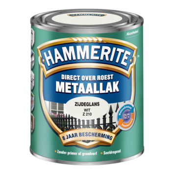 Hammerite metaallak wit zijdeglans 750 ml is een decoratieve, roestwerende metaallak voor alle soorten metaal. U kunt het zonder grondverf direct over roest aanbrengen. U hoeft dus niet urenlang te schuren of te ontroesten want Hammerite metaallak hecht uitstekend. Het stopt het roestproces en geeft maar liefst 8 jaar roestbescherming. Hammerite metaallak zijdeglans is waterafstotend en weersbestendig waardoor u het goed kunt gebruiken voor de bescherming van allerlei metalen objecten buiten. Hammerite metaallak is in diverse kleuren leverbaar en is UV-bestendig waardoor het metaal langdurig mooi blijft. De inhoudsmaat is 750 ml.
