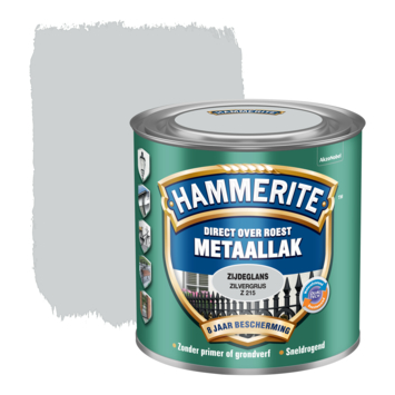 Hammerite metaallak zilvergrijs zijdeglans 250 ml is een decoratieve, roestwerende metaallak voor alle soorten metaal. U kunt het zonder grondverf direct over roest aanbrengen. U hoeft dus niet urenlang te schuren of te ontroesten want Hammerite metaallak hecht uitstekend. Het stopt het roestproces en geeft maar liefst 8 jaar roestbescherming. Hammerite metaallak zijdeglans is waterafstotend en weersbestendig waardoor u het goed kunt gebruiken voor de bescherming van allerlei metalen objecten buiten. Hammerite metaallak is in diverse kleuren leverbaar en is UV-bestendig waardoor het metaal langdurig mooi blijft. De inhoudsmaat is 250 ml.