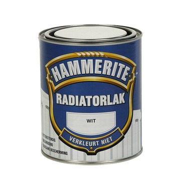 Hammerite radiatorlak wit hoogglans 750 ml is een hoogglanzende, hittebestendige lak. Het is speciaal geschikt voor duurzame bescherming van radiatoren, warmwaterleidingen en cv-buizen. Ondanks de hoge temperaturen bij deze toepassingen vergeelt de Hammerite radiatorlak niet en blijft uw radiator mooi van kleur. Hammerite radiatorlak is sneldrogend. Laat de radiator na het aanbrengen van de Hammerite radiatorlak minimaal 24 uur drogen en breng de radiator bij het eerste gebruik geleidelijk op temperatuur. De inhoudsmaat is 750 ml.