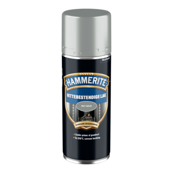Hammerite spuitlak hittebestendig grijs 400 ml is een matte, hittebestendige lak. Het is speciaal geschikt voor metalen voorwerpen die extreem verhit worden. Hammerite Hittebestendige lak biedt een duurzame bescherming aan metalen voorwerpen binnen zoals bijvoorbeeld kachels, open haarden of barbecues. Het wordt geleverd in een handige spuitbus waardoor u eenvoudig moeilijk bereikbare plaatsen kunt behandelen. Hammerite Hittebestendige lak is snel droog waardoor u de tweede laag al na 10 minuten kunt aanbrengen.