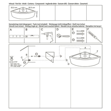 Deze Handenwasser Hera bestaat uit een compacte hoekfontein van hoogwaardig wit keramiek met overloopbeveiliging en voorgemonteerd kraangat. De afmetingen zijn als volgt: 31.5x31.5x12.4cm. Deze Differnz Hoekfontein Hera Wit 31.5x31.5x12.4 cm is zelf te monteren.