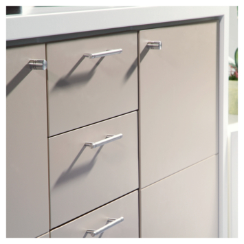 De handgreep Leonie RVS 128 mm is een moderne en veelzijdige handgreep die een strakke en verzorgde afwerking geeft aan kasten, lades en deuren. Deze handgreep heeft een totale lengte van 166 mm en een schroefafstand van 128 mm, waardoor hij geschikt is voor standaard voorgeboorde meubelfronten en eenvoudig te monteren is. Het ontwerp van de Leonie-handgreep is subtiel en eigentijds, met een licht afgeronde vorm die prettig in de hand ligt. De RVS-afwerking zorgt voor een neutrale, tijdloze uitstraling.
