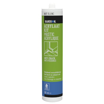 Handson acrylaatkit is een hoogwaardige acrylaatkit die na het aanbrengen snel regenbestendig is. Na het aanbrengen vormt het product een elastisch rubber door verdamping van het water uit de kit.