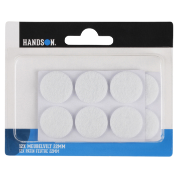 Het HANDSON anti krasvilt wordt gebruikt voor onder het meubilair en beschermt de vloer tegen krassen en andere beschadigingen door het verschuiven van het meubelstuk. Met het HANDSON meubelvilt wit wordt dat probleem verholpen. Het vilt is reeds voorzien van een zelfklevende laag zodat je het alleen nog maar op maat hoeft te maken. De afmeting is Ø22 mm en in de verpakking zitten 12 stuks in de kleur wit.