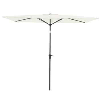 Deze Handson balkonparasol in een chique ecru kleur is ideaal voor je balkon of terras. Met een afmeting van 1,5 bij 2,5 meter biedt de rechthoekige parasol voldoende schaduw, zodat je kunt genieten van een zonvrije plek. Het stevige ontwerp van kunststof en metaal zorgt voor een lange levensduur. Het uitklapmechanisme met hendel maakt het openen en sluiten van de parasol gemakkelijk en snel. Het doek van polyester is sterk en onderhoudsvriendelijk, zodat jij meer tijd hebt om van je buitenruimte te genieten. Perfect voor een rustige middag buiten, biedt deze parasol zowel stijl als functionaliteit. Kortom, met deze Handson balkonparasol maak je je buitenruimte compleet!