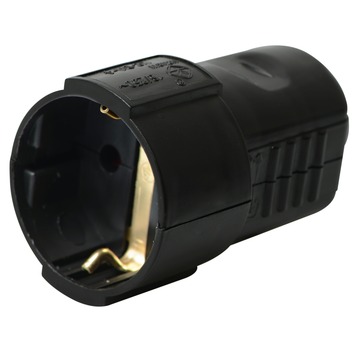 De contrastekker zwart randaarde is geschikt voor het aansluiten van vinyl kabels van 3x1mm2 tot 3x1,5mm2. De ‘aarde’ zorgt ervoor dat, in geval van kapotte- of losgeschoten bedrading in een apparaat (bv. wasmachine of computer), de metalen delen niet onder stroom komen te staan, de stroom wordt dan via een extra aardedraad in de aarde geleid. De stekker heeft een aansluitvermogen van 16Ampère.