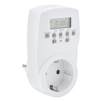 Een eenvoudige digitale tijdschakelaar nodig? Kies dan voor Tijdschakelklok digitaal mini. Deze tijdschakelaar zorgt ervoor dat elektrische apparaten automatisch in- of uitschakelen op de tijd die jij instelt. Dankzij het eenvoudige digitale programma kun je de schakelaar tot op de minuut nauwkeurig instellen voor verschillende dagen in de week. Deze tijdschakelklok is gemaakt van kunststof en daarom makkelijk schoon te maken. Kortom: een handig hulpmiddel voor in ieder huis.