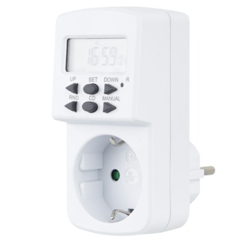 Een eenvoudige digitale tijdschakelaar nodig? Kies dan voor Tijdschakelklok digitaal mini. Deze tijdschakelaar zorgt ervoor dat elektrische apparaten automatisch in- of uitschakelen op de tijd die jij instelt. Dankzij het eenvoudige digitale programma kun je de schakelaar tot op de minuut nauwkeurig instellen voor verschillende dagen in de week. Deze tijdschakelklok is gemaakt van kunststof en daarom makkelijk schoon te maken. Kortom: een handig hulpmiddel voor in ieder huis.