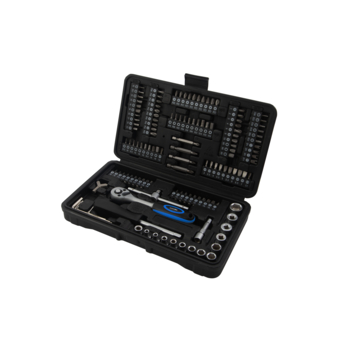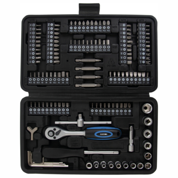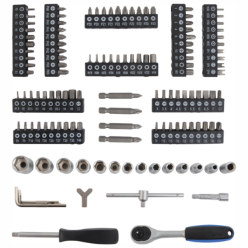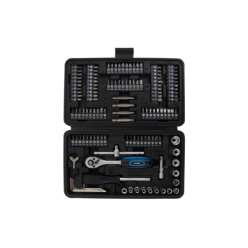 De HANDSON-dopsleutelset met 1/4"-dopsleutels bestaat uit 130 delen. De set bevat 13 losse dopsleutels, een ratel, een verlengstuk van 50mm, een ratelschroevendraaier, een T-sleutel, een 100-delige bitset met bithouder, inbussleutels en een haakschroevendraaier. De dopsleutels uit deze set zijn gemaakt van hoge kwaliteit chroom-vanadiumstaal. Ook bevat deze set nog 4 lange bits. De dopsleutels en lange dopsleutels uit de set hebben een sleutelwijdte variërend van 4mm tot 14mm. In de bijbehorende handige cassette bergt u alle dopsleutels, bits en accessoires goed en overzichtelijk op. Kortom, met de dopsleutelset van HANDSON heeft u altijd de juiste dopsleutel bij de hand voor het los- of vastdraaien van iedere moer op iedere plek.