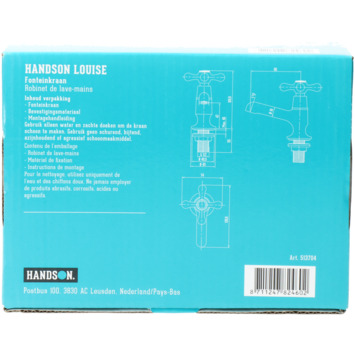 Deze Handson Fonteinkraan Louise met Draaiknop Chroom is onderdeel van de Handson Louise kranenserie. Kenmerkend voor de Louise-serie zijn de klassieke bedieningsknoppen. Je kunt in deze serie kiezen tussen tweeknops mengkranen of thermostatische kranen. Dankzij de keramische schijven in de kraan is het makkelijk om de kraan goed dicht te draaien. De kraan is voorzien van een chroom afwerking. Dankzij de fabrieksgarantie van 5 jaar ben je verzekerd van een goede aankoop.