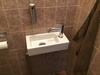 Straal komt mooi in de afvoer,want fonteintje is niet zo groot.