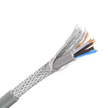 De gevlochten mantel voorkomt dat de stroomvoerende aders beschadigd raken bij bijvoorbeeld graafwerkzaamheden in de grond.