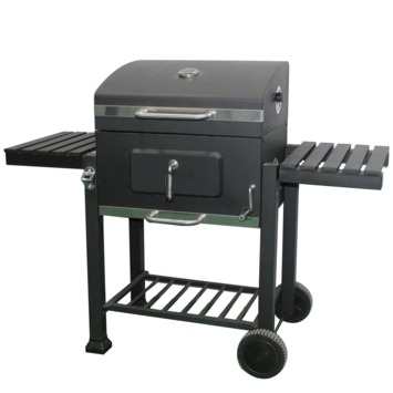 Je zoekt een authentieke houtskoolbarbecue met extra werkruimte? Dan moet je de Handson BBQ XL hebben. Deze houtskoolbarbecue heeft een grilloppervlak van 55x41,5cm en is aan beide zijden voorzien van werkbladen. Erg handig, want hierop kun je op comfortabele hoogte al je vlees, vis en groenten snijden. Verder is de barbecue uitgerust met een deksel die is voorzien van een ventilatierooster, waarmee je zorgt voor de juiste luchttoevoer voor het perfecte stuk vlees. Ook vind je een opklapbaar warmhoudrek in de BBQ, wat jouw gegaarde stuk vlees goed op temperatuur houdt. Dankzij de wielen kun je de barbecue eenvoudig verplaatsen van de ene naar de andere kant van je tuin. De barbecue wordt geleverd in losse delen, die je eenvoudig zelf in elkaar kunt zetten. Kortom: een luxe houtskoolbarbecue voor verschillende bak- en grillwerkzaamheden.