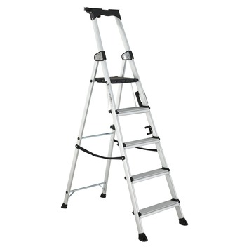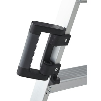 De Handson huishoudtrap is een stevige en veilige uitklapbare trap gemaakt van aluminium. Door de ruw bekleede treden staat u stevig op de trap en door de handige gereedschapshouder kunt u al uw spullen veilig aan uw trap hangen tijdens uw klus. Op de zijkant van de trap zit een handig handvat waarmee u de trap kan verplaatsen wanneer u deze heeft ingeklapt.