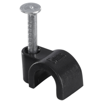 HANDSON kabelclip 5mm rond zwart 25 stuks. Met de kabelclip rond zwart 5mm 25 stuks spijker je draden met een diameter tot 5mm vast op de gewenste plaats. Deze zwarte kabelclips worden per 25 stuks verkocht.