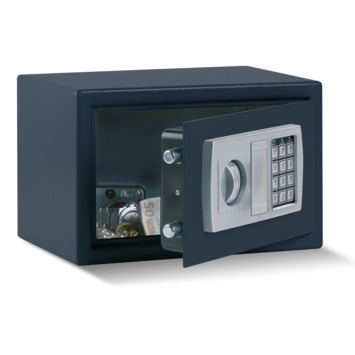 Een kleine kluis waar u uw meest dierbare spullen in kan opbergen om te beschermen tegen bijvoorbeeld dieven. Deze enkelwandige kluis heeft een inhoude van 8,6 liter is gemaakt van staal en wordt geleverd met verankeringsmateriaal. De elektronische cijferslot kunt u zelf instellen en heeft 4 AA-batterijen nodig, deze zijn niet bij de kluis inbegrepen.