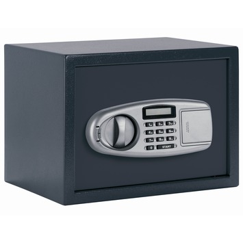 Een grote kluis waar u uw dierbare en kostbare spullen in kan opbergen zodat deze veilig achter slot en grendel liggen zodat kinderen en dieven daar niet bij kunnen. De kluis heeft een elektronisch cijferslot met LCD-display die 4 AA-batterijen nodig heeft, deze zijn niet inbegrepen. Deze enkelwandige kluis heeft een inhoud van 15,3 liter en weegt 7,2 kilo en is gemaakt van staal.