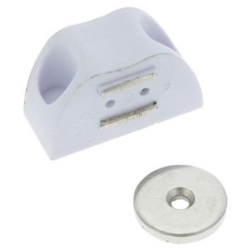 Een magneetsnapper klikt bijvoorbeeld een kastje in de badkamer of keuken heel gemakkelijk aan elkaar. Ideaal voor in een modern interieur want je hebt geen grepen meer nodig aangezien ze ook opengaan door erop te drukken. De magneetsnapper is van kunststof met een afwerking van mat nikkel. De magneet heeft een kracht van 3 kg. De magneetsluiting is omkeerbaar en heeft een witte kleur.