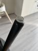 Had eerst plakviltjes, maar die schuiven er van af. 1,5 mm gaatje voorboren om splijten v.d. stoelpoten te voorkomen. Werkt perfect en er blijven ook minder stof en (honden-)haren aan plakken.