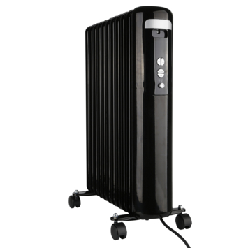 De must have van deze winter is een mobiele radiator waarmee je letterlijk en figuurlijk alle kanten uitkan want het verwarmt je ruimtes snel en veilig. Deze zwarte oliegevulde radiator bestaat uit 11 elementen met een vermogen van 2500 W. Hij heeft een regelbare thermostaat, een timer en een digitale display.