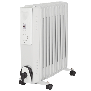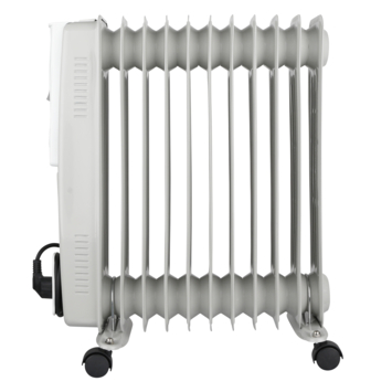 Met de Handson oliegevulde radiator 2500W met 11 elementen verwarm je ruimtes snel en veilig. Deze witte olie gevulde radiator bestaat uit 11 elementen met een vermogen van 2500 W. De radiator heeft overhittingsbeveiliging, een regelbare thermostaat en is regelbaar in 3 standen. Door de 4 wieltjes is de kachel zeer mobiel, het enige wat je hoeft te doen is de stekker in het stopcontact te steken.