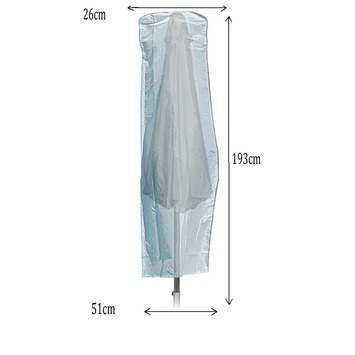Om je parasol te beschermen tegen verschillende weerselementen kan je gebruik maken van een parasolhoes. De Parasolhoes transparant 193x53 cm is namelijk gemaakt van sterk, waterafstotend polyester. Daarnaast is de hoes voorzien van getapete naden, zodat ook hier geen water doorheen kan komen. Door middel van de ritssluiting is de hoes eenvoudig in gebruik. Om schimmelvorming te voorkomen is het belangrijk dat de parasol kan ademen. Zorg er daarom voor dat de hoes aan de onderkant openblijft. De hoes is 193 centimeter lang en 53 centimeter breed. Kortom, kies deze parasolhoes voor optimale bescherming van je parasol.