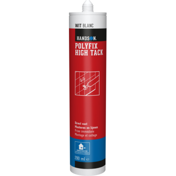 Handson Polyfix High Tack kit wit 290 ml is een hybride polymeerkit met een hoge aanvangshechting, waardoor materialen direct stevig vaststaan. De kit hecht op vrijwel alle gangbare ondergronden, inclusief licht vochtige oppervlakken. Hij heeft een snelle sterkteopbouw en is geschikt voor uiteenlopende montageklussen, waaronder toepassingen met natuursteen.